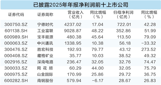 从行业分布看,目前已披露2025年年报的上市公司群体中,AI算力、半导体等新兴产业企业表现尤为亮眼。