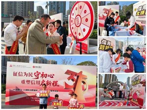 3月15日,人民银行赣州市分行联合赣州银行,在君尚购物广场举办“征信为民守初心 重塑信用启新程”3·15国际消费者权益日征信知识宣传活动。活动聚焦群众关切,以创新形式普及央行一次性信用修复政策,让征信知识走进市民身边,切实提升公众信用素养。