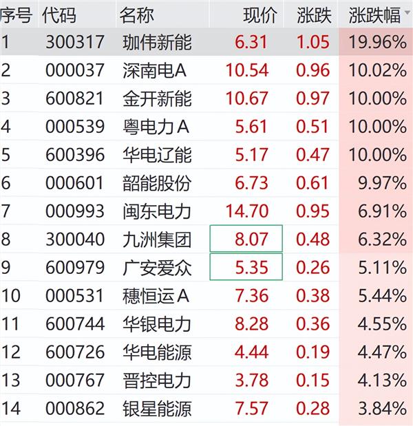 3月18日上午,公用事业板块走强,绿色电力概念股反复活跃。华电辽能走出3连板,韶能股份、金开新能等纷纷涨停,粤东电力、华银电力等跟涨。