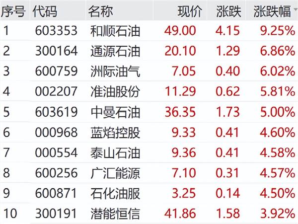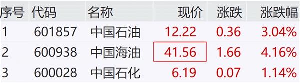 中国海油涨超4%,中国石油涨超3%。