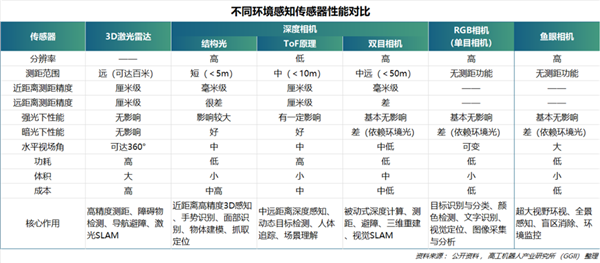 以深度相机为主的多传感器融合是目前人形/四足机器人的主流视觉方案,3D激光雷达凭借更广的测距范围、更高的测距精度和更大的FOV有望成为标配。