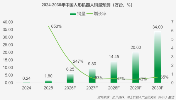 高工机器人产业研究(GGII)所数据显示,2025年全年国内人形机器人出货量约为1.8万台,同比2024年的2400台增长超650%,标志着人形机器人产业从概念验证期迈入早期商用阶段。