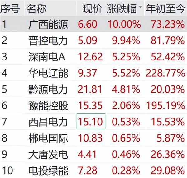 3月27日上午,能源、电力板块持续活跃。广西能源、晋控电力盘初涨停,华电辽能、深南电A、黔源电力等纷纷跟涨。