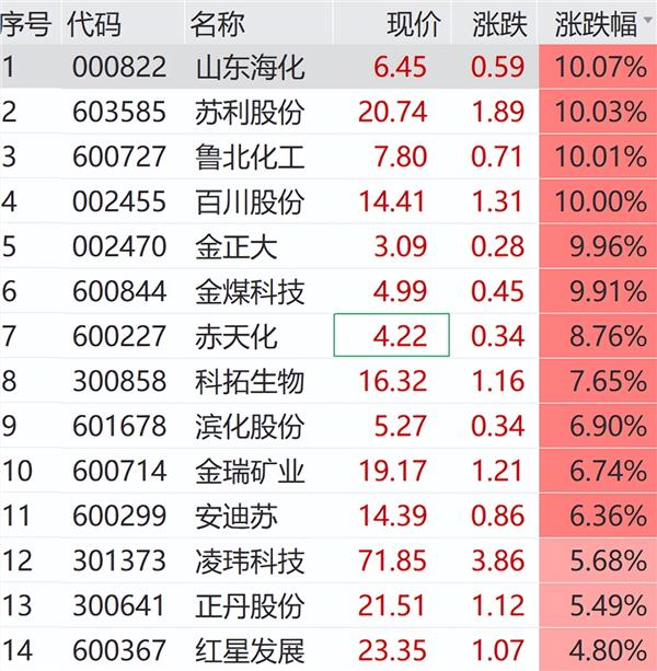 3月27日,A股基础化工板块盘初走强,山东海化、苏利股份、鲁北化工、百川股份、金正大等纷纷涨停。