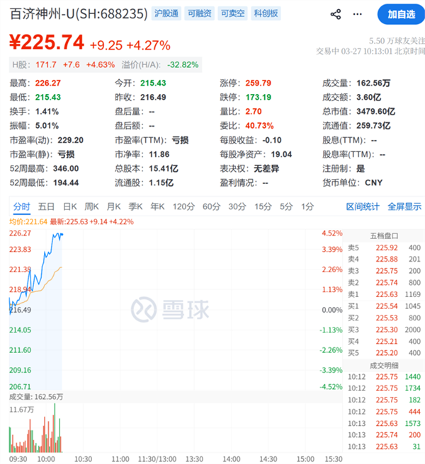 百济神州盘中走强,涨超4%。