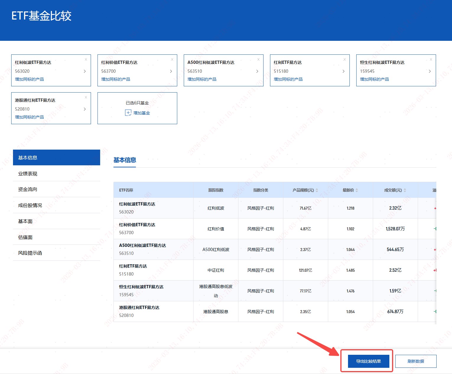 与此同时,网页版还对“比较”功能进行了升级,新增ETF产品对比结果一键导出功能,方便投资者对相关数据进行留存与复盘分析。此外,网页端已与小程序账号体系打通,实现移动端与PC端之间的无缝衔接,为用户提供更加连贯、便捷的使用体验。
