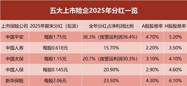 2025年五大险企分红超1000亿元
