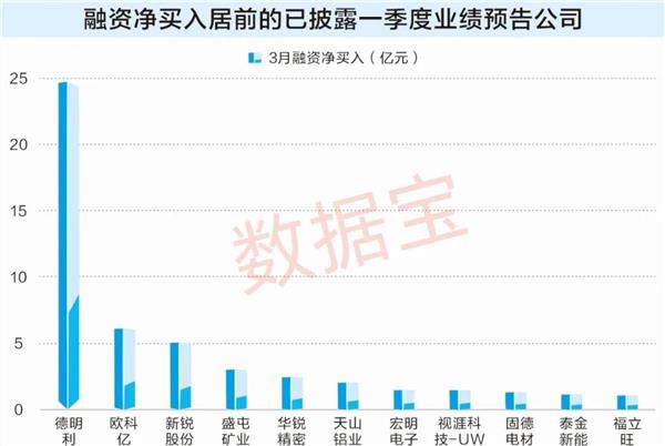 据数据宝统计,截至3月31日,3月以来上述26股获融资净买入金额合计达到37.31亿元,其中11股融资净买入金额超过1亿元,德明利、欧科亿、新锐股份居前,分别达到24.76亿元、6.1亿元、5.03亿元。
