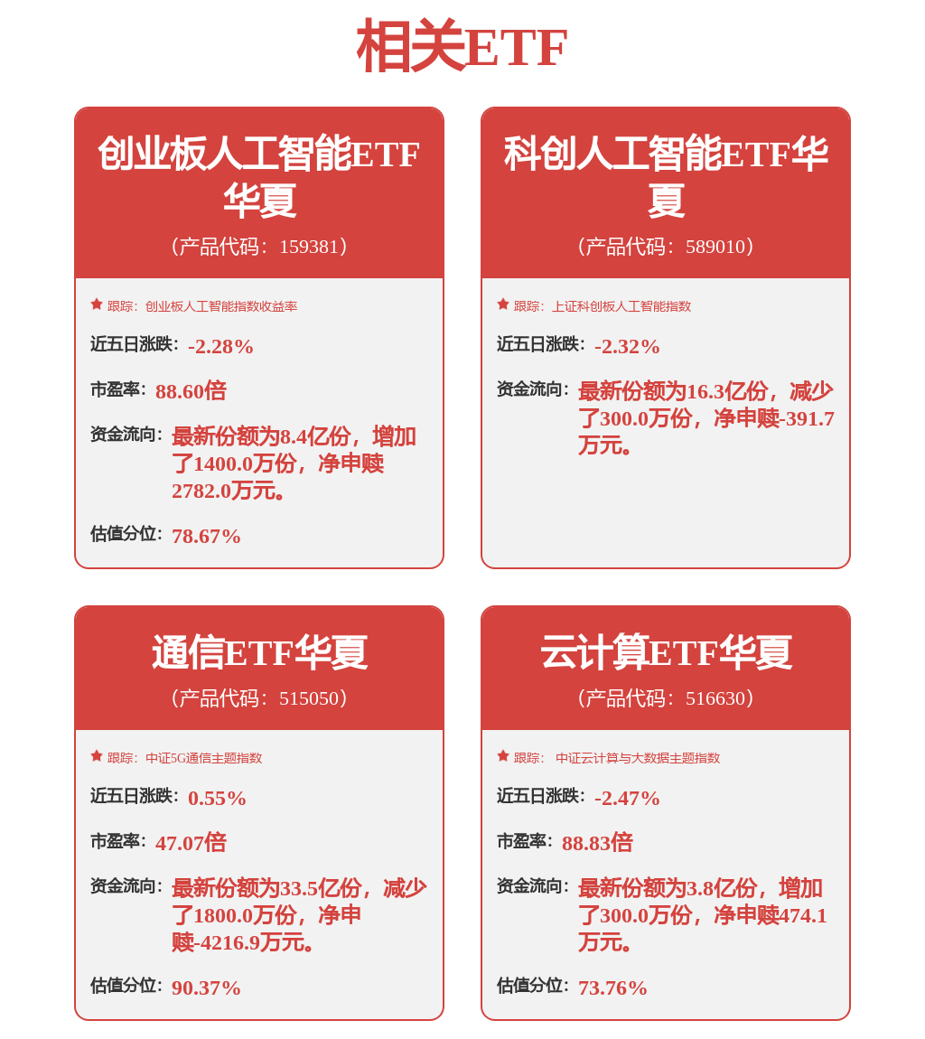 通信ETF华夏(515050)紧密跟踪中证5G通信主题指数,深度聚焦光模块、服务器、光纤光缆、存储芯片、PCB等算力硬件,数据中心概念股权重占比近70%,最新规模近80亿元,助力一键布局光通信算力景气周期。前10大持仓股:新易盛、中际旭创、立讯精密、工业富联、兆易创新、天孚通信、东山精密、华工科技、沪电股份、中兴通讯。场外联接(A类:008086;C类:008087)