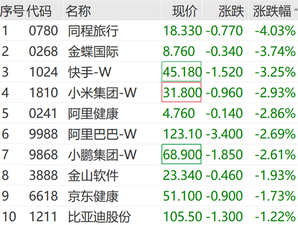 港股早间同步低开,截至发稿,三大指数继续飘绿。同程旅行跌超4%,领跌恒生科技指数成份股。