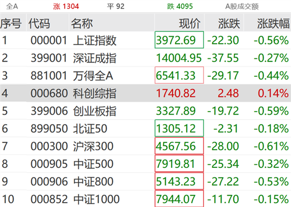 经历了昨日的“史诗级”大涨后,4月9日,A股主要指数集体低开:上证指数跌0.69%,深证成指跌0.81%,创业板指跌0.94%。随后,市场震荡回暖,指数跌幅有所收窄,科创综指率先翻红。