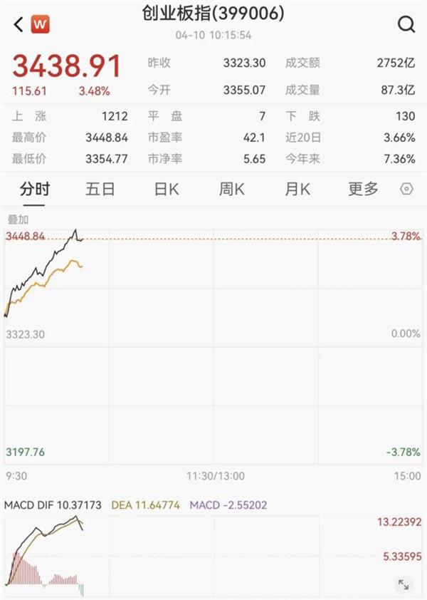 4月10日早盘,A股三大指数集体高开,指数快速走强,沪指时隔14个交易日重回4000点。截至发稿,沪指涨0.95%,深成指涨2.35%,创业板指涨3.47%,科创综指涨2.00%。