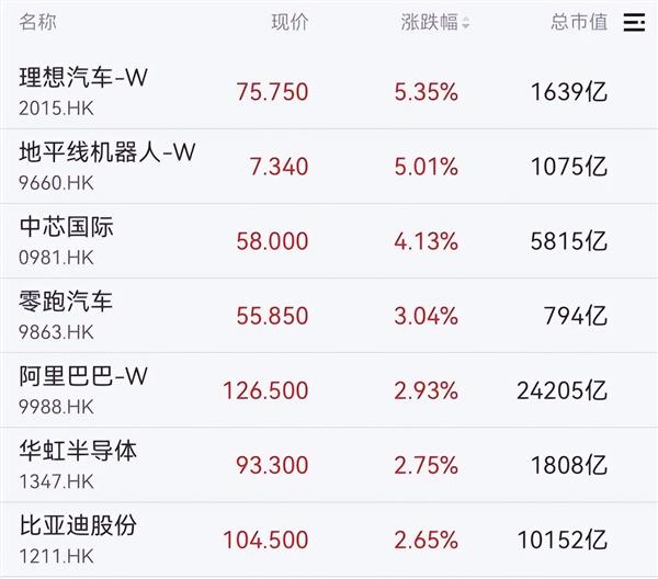 港股方面,恒生科技指数涨1.87%,理想汽车、地平线机器人、中芯国际等涨幅居前。