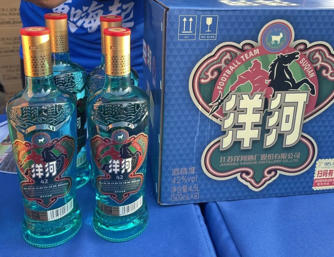 更吸睛的是,“专属应援酒”——洋河光瓶酒(蓝洋河)“苏超”版,直接把氛围感拉满,瓶身宿迁队徽标志性霸王图腾刚劲有力,彰显出主场情怀,成为球迷们争相打卡、拍照留念的热门白酒。
