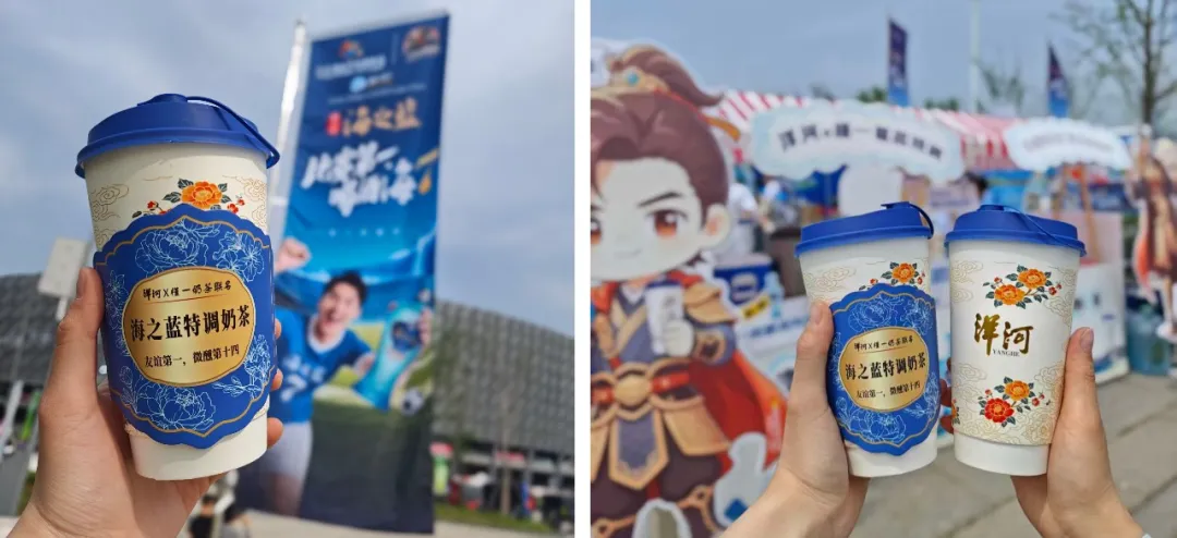 在宿迁梦之蓝奥体中心,洋河与“苏超”小微赞助商——宿迁槿一奶茶,联合推出的“海之蓝微醺奶茶”受到了球迷们的喜爱。等待观赛时刻,一杯清爽的微醺奶茶相伴,轻松解锁观赛全新体验。