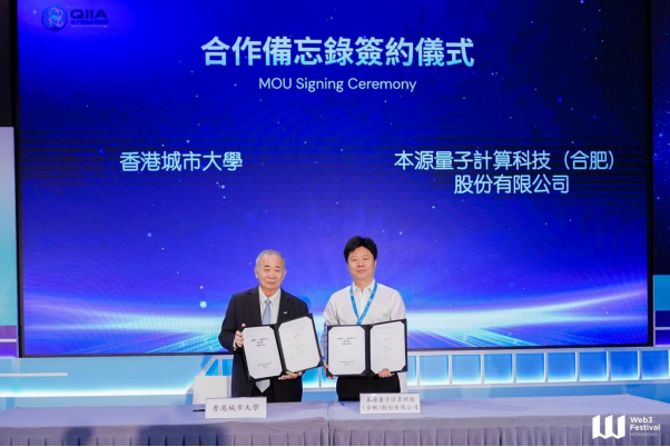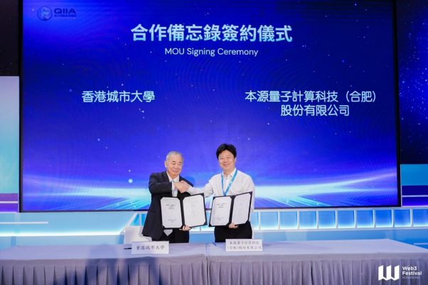 日前,由香港城市大學(城大)發起的「量子智能產業聯盟」(联盟)於香港會議展覽中心 Web3 Festival 2026 舉行盛大啟動儀式。立法會科技創新界議員邱達根、香港創新科技及工業局工業專員葛明博士親臨見證。儀式上,城大宣佈與本源量子攜手建設「先進算力中心」,並將部署香港首台量子計算真機——「本源悟空」。