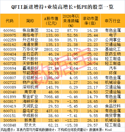 外资一季度潜伏加仓股揭晓,爆买6大龙头!业绩高增长+低PE股仅21只